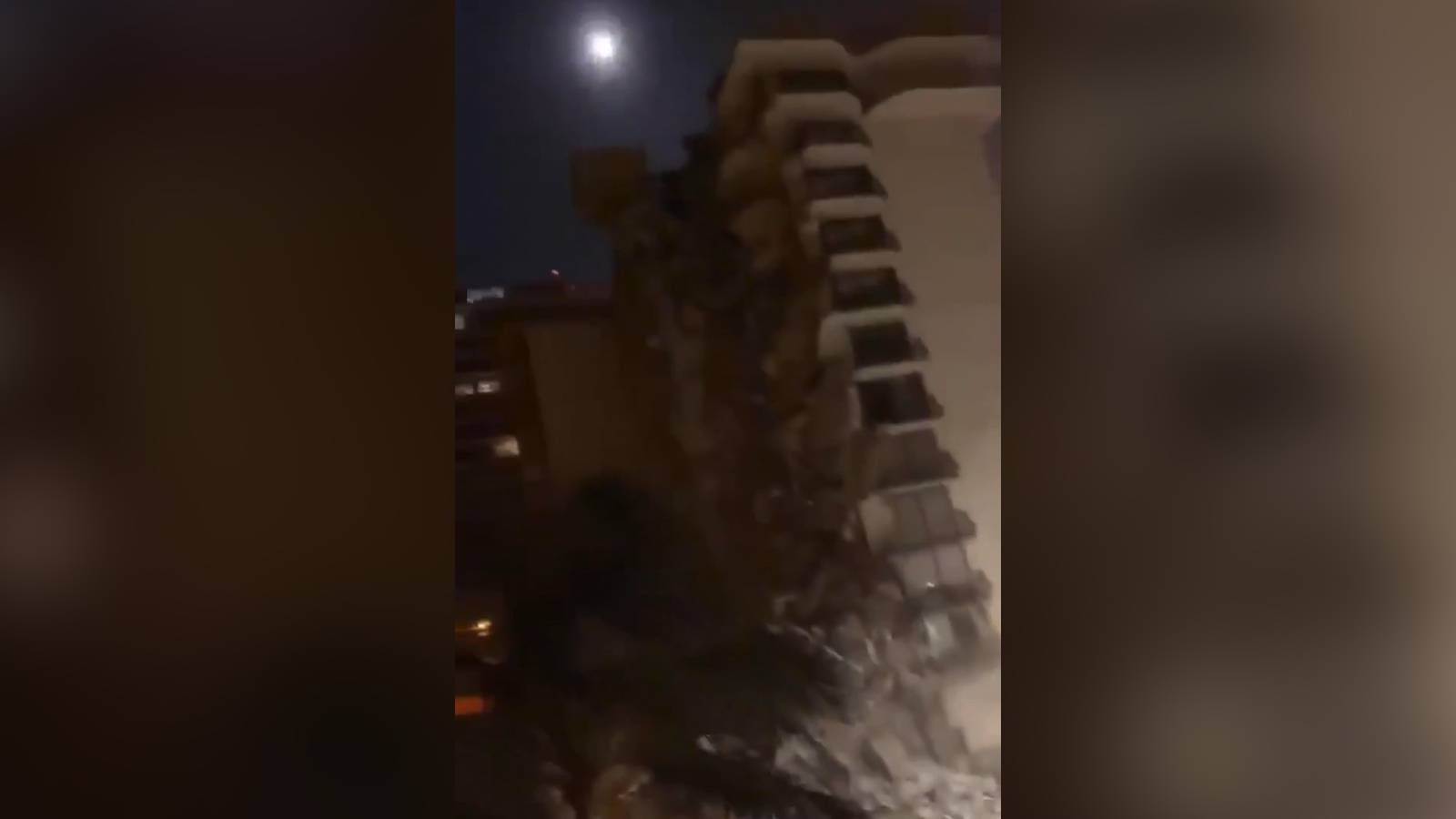 In der kleinstadt surfside bei miami beach ist in der donnerstagnacht ein hochhaus teilweise.